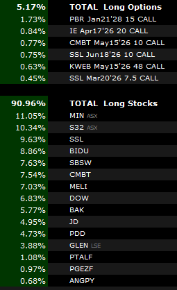 - Refiners/Chemicals - I know basically nothing about chemicals, except that it is over supplied due to Chinese over-capacity, and weak consumer demand. Interested because all news and articles are bearish, and charts look terrible. Smart people I follow are starting to pay attention. Watching for a change in sentiment to put in a bottom. China anti-involution policy could be the start, but I'm mindful that it could just as easily go lower. Will use tight stops, and trade around any small spikes to build up buffer.